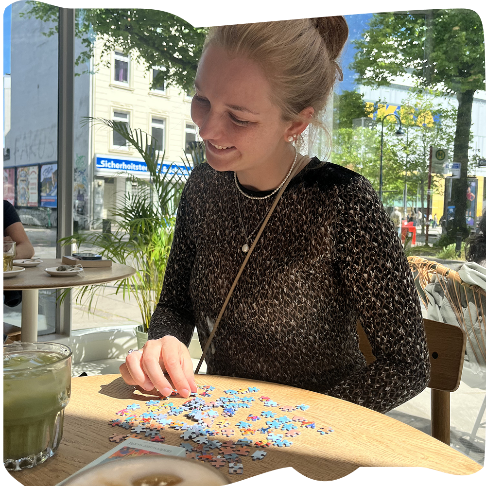Im Urlaub shooten wir unsere Puzzles. Direkt bei Öffnung unseres Lieblingscafés auf Mallorca stehen wir auf der Matte und nutzen die freien Plätze für ein Shooting.