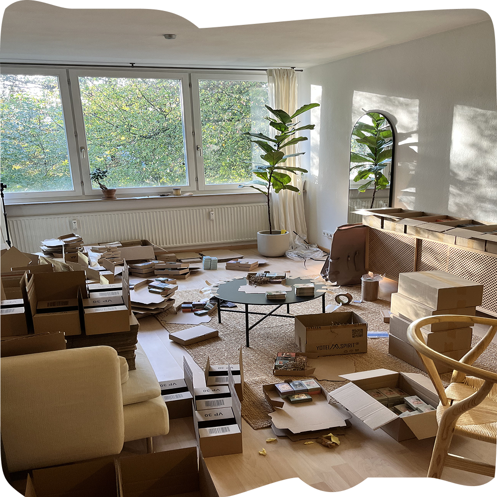 Der erste Launch läuft grandios. Wir können es gar nicht glauben und sind innerhalb eines Tages ausverkauft. Verpackt wird in Anna-Lara's Wohnzimmer...😅